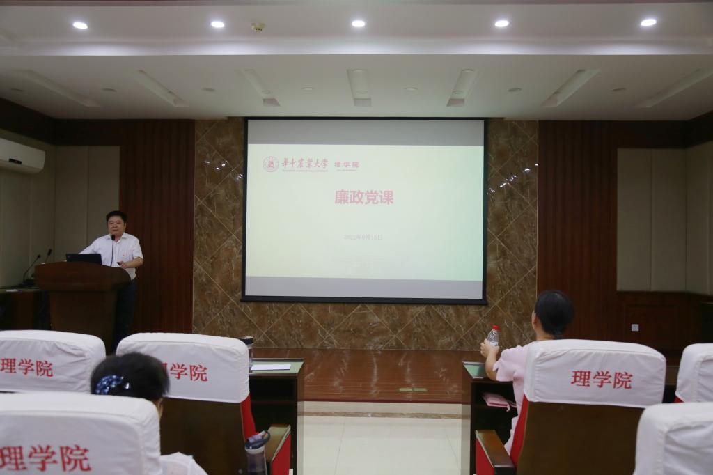 最后,他以“牢记初心使命,立德树人砥砺前行;牢守拒腐防线,协力共建清朗狮山”结束本次廉政党课。