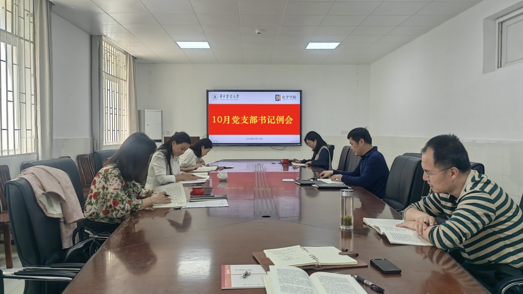 在化学楼A106会议室召开党支部书记例会,传达学习学校十月份党建与思想政治工作部署会精神,部署学校第十一次党代会代表选举、“两委”委员候选人推荐提名工作以及近期重点工作,会议由麻豆在线