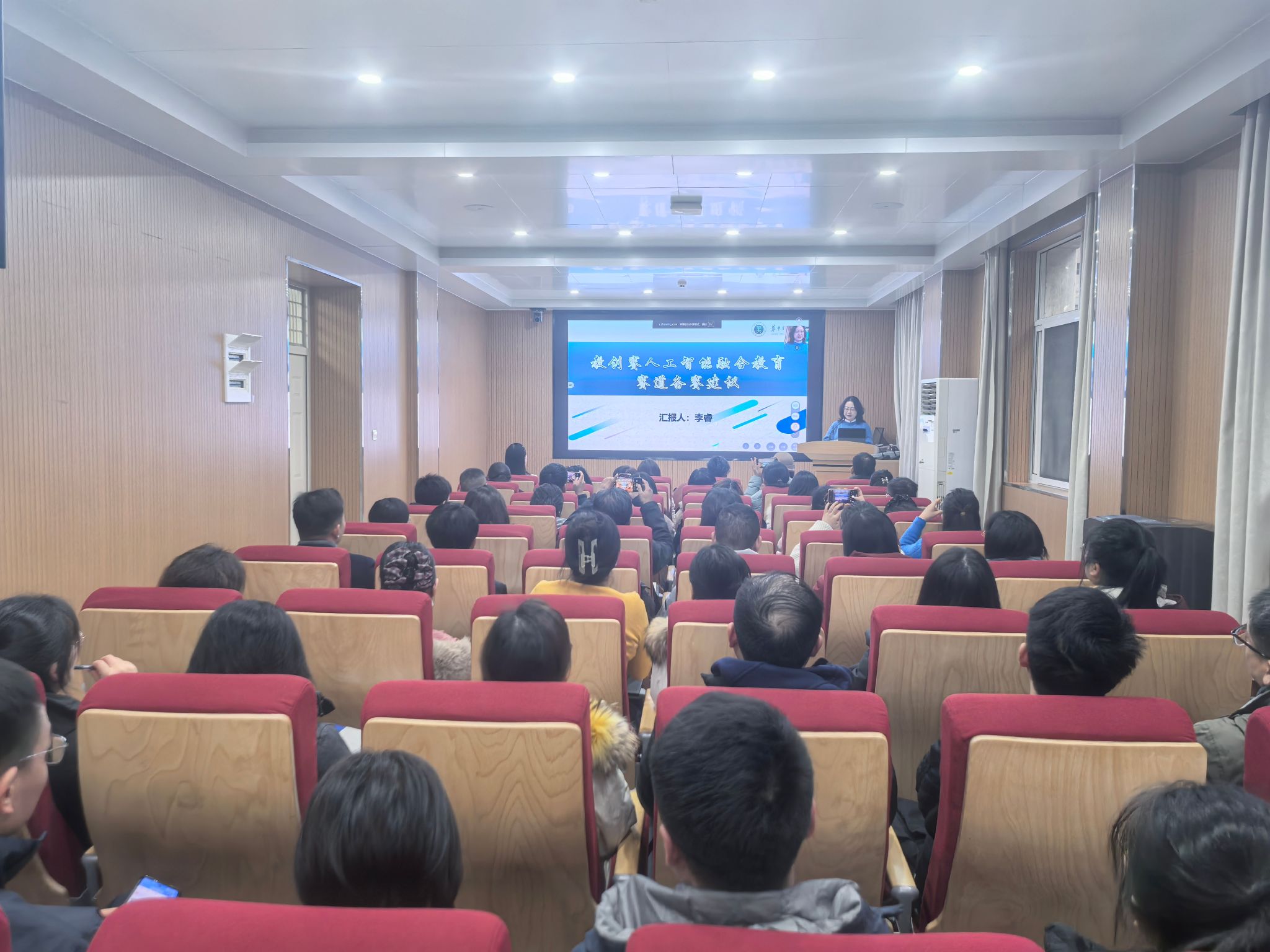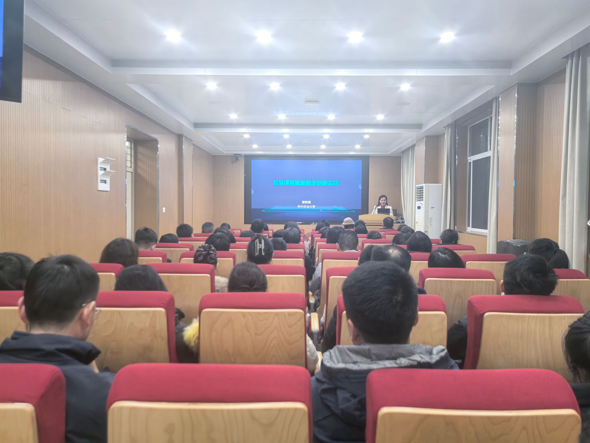 曹敏惠教授担任分享嘉宾,报告厅现场座无虚席、人气爆棚,来自校内外的120名教师现场参会,420名教师通过雨课堂直播线上参会。