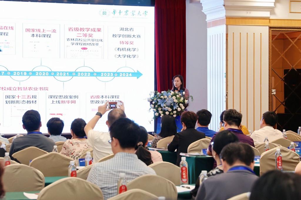 曹菲菲作了“坚持‘四个强化’ 深化课程创新 推动农林高校化学教学高质量发展”的专题报告,围绕强化师资队伍建设、强化教学资源建设、强化课程内容创新以及强化教学模式改革四个方面,介绍了化学课程建设现状、创新思路与举措以及未来建设方向。