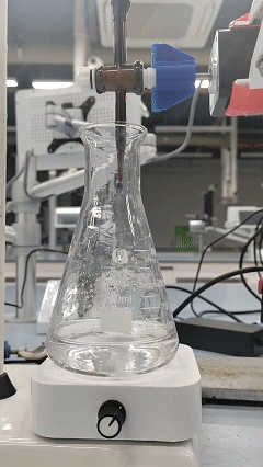 代表队选取的滴定实验为高锰酸钾测定硫酸亚铁铵中亚铁离子含量,为比赛中唯一一项氧化还原滴定反应。与其余队伍所设计的实验截然不同的是,该实验采用有色标准溶液滴定无色待测溶液。在有色标准溶液在滴入锥形瓶的扩散过程中易造成颜色误判,具有一定的挑战性。麻豆在线