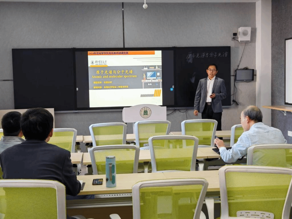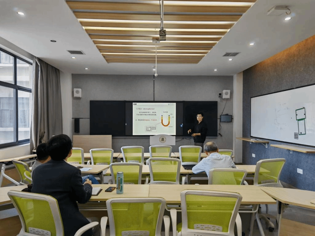 张晓虎以“原子光谱和分子光谱”为主要内容,就原子光谱和分子光谱的定义、产生的原理、分子光谱和原子光谱的仪器构造,以及我国在分子光谱和原子光谱的最新应用,以及张老师课题组的最新相关研究进展进行了展示。徐艳松老师以“胶体的结构和胶体凝结”进行了展示,徐老师从胶体的性质、胶团的组成结构与写法、溶胶的稳定性与凝结等进行了汇报。