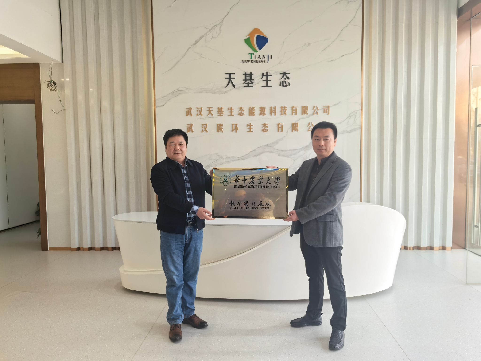 党委书记涂俊才一行5人前往武汉天基生态能源科技有限公司走访调研,并进行了教学实习基地授牌仪式。湖北天基董事长邓金华、武汉天基常务副总经理何小平等企业代表参加活动。