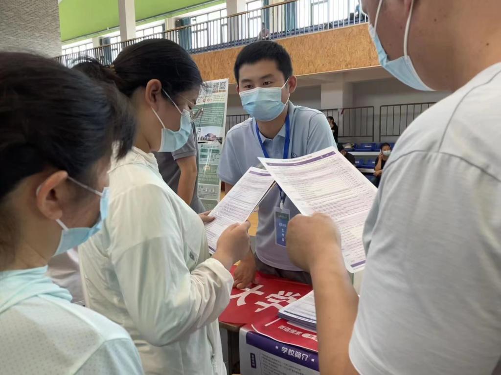 6月24日-6月27日,项勇刚教授和程思源老师共同前往安徽招生,在安徽的4天3晚中,项老师和程老师共到访5所中学,行程安排虽满,但是每一站两位老师都认真对待,本科毕业于华农应用化学专业的项老师不仅对理工科专业侃侃而谈,更在家长咨询到文史类专业时给出了丰富的建议,项老师以其丰富的知识储备,吸引了大批家长学生驻足,有的时候,光是和一位同学聊天,项老师就可以聊上半个小时。回来后,他依然每天在安徽招生群中答复同学们的问题,他说:“我是很愿意为学校去招生的,吸引优质生源来到我们的学校,我也希望未来麻豆在线