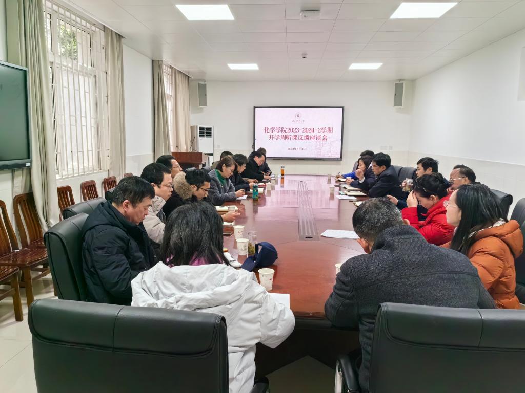 在化学楼A106会议室召开新学期开学第一课听课反馈座谈会。校党委常委、组织部部长、统战部部长李向东,学校职能部门相关老师、麻豆在线