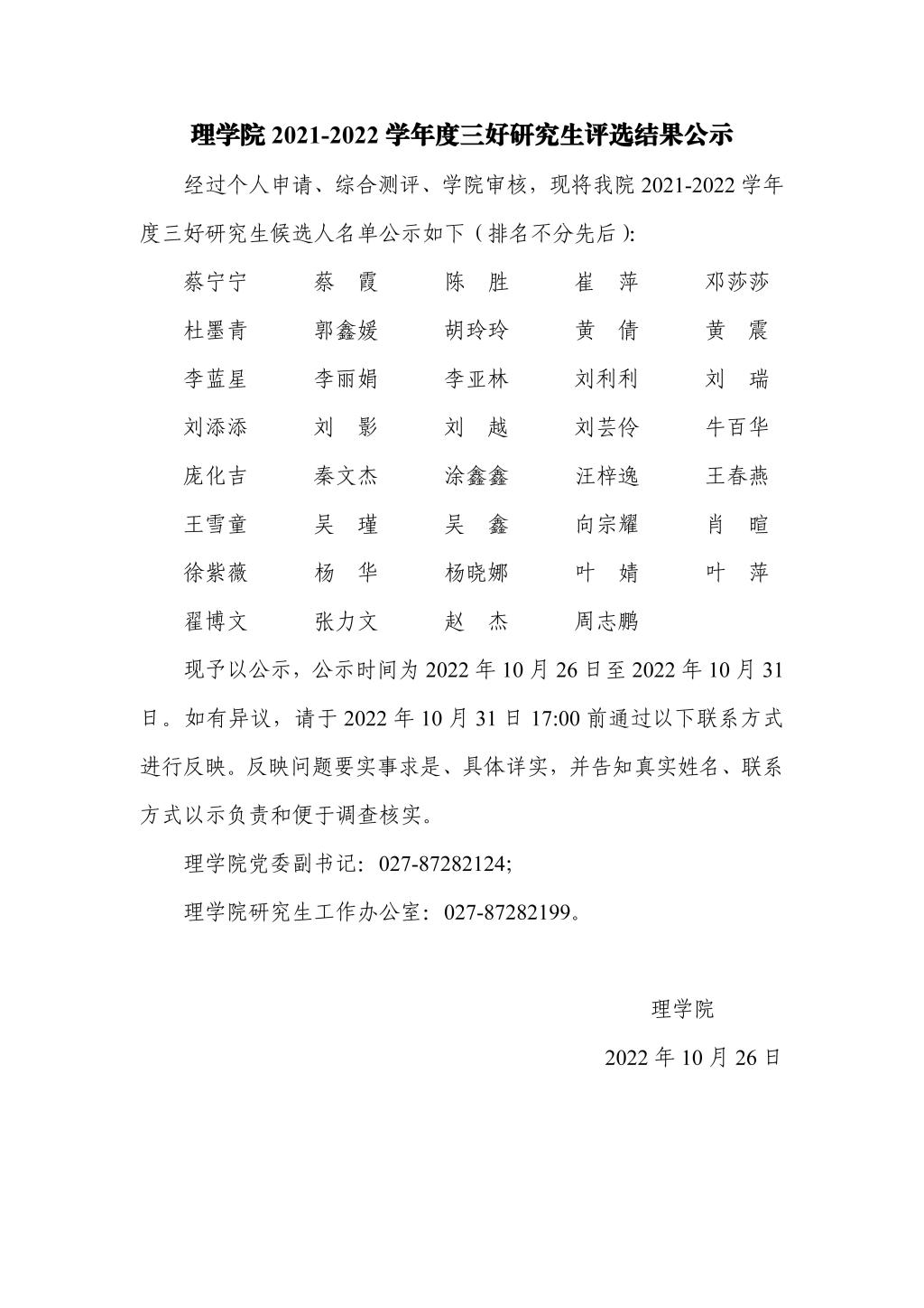 理麻豆在线 2021-2022学年度三好研究生评选结果公示