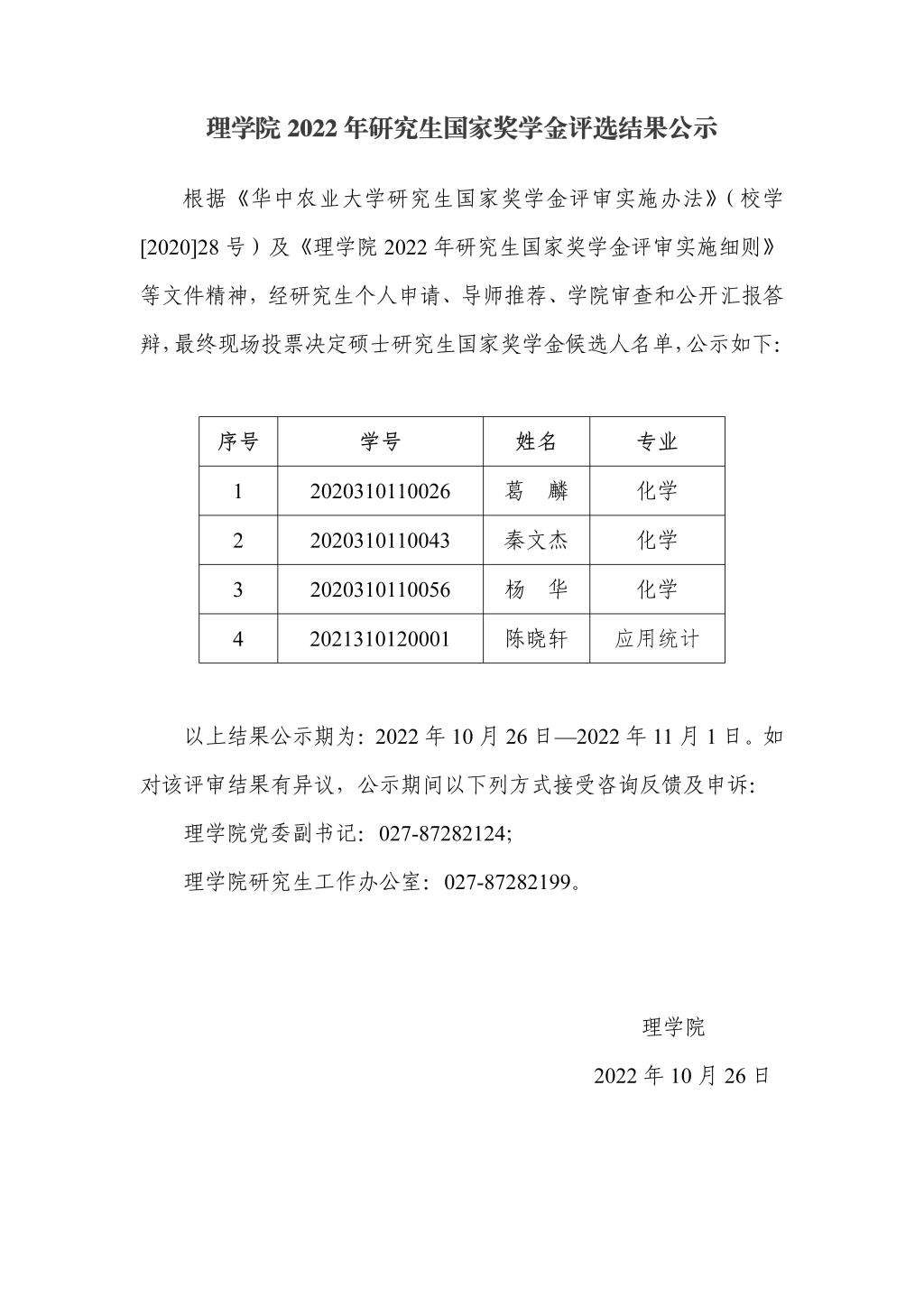 理麻豆在线 2022年研究生国家奖学金评选结果公示