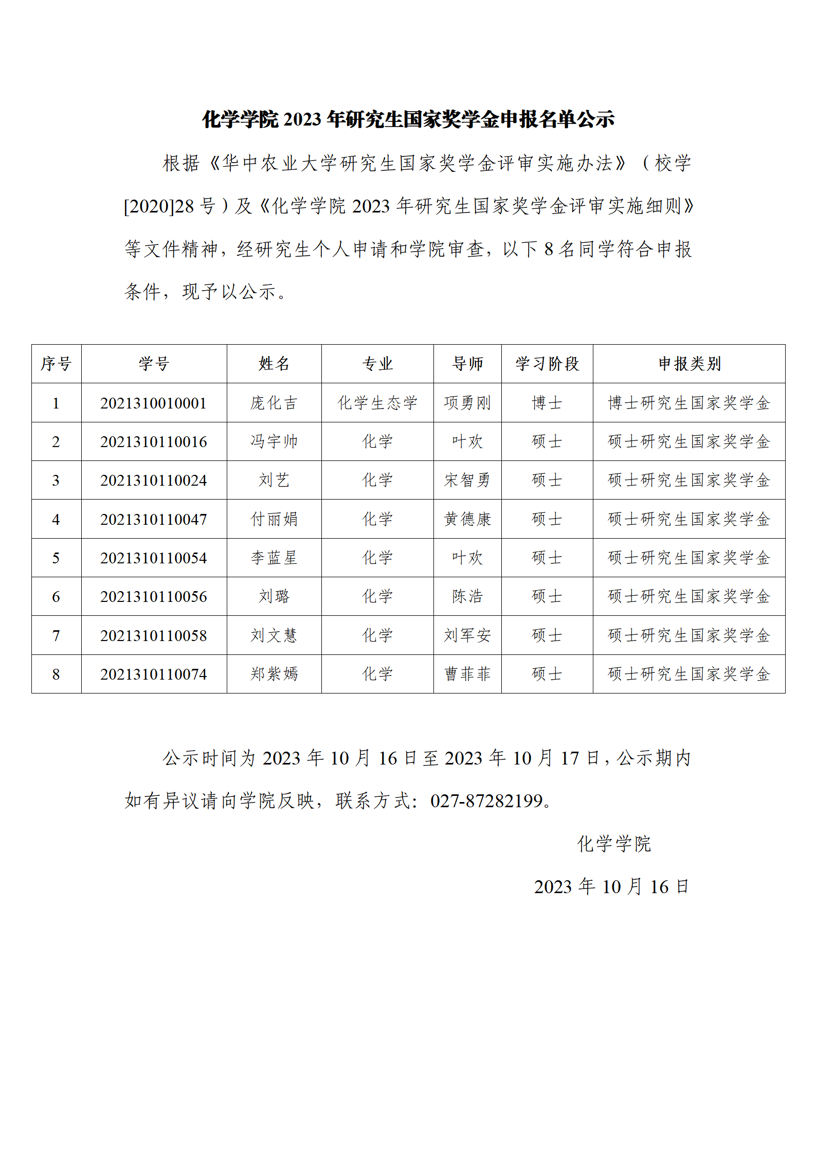 麻豆在线 2023年研究生国家奖学金申报名单公示
