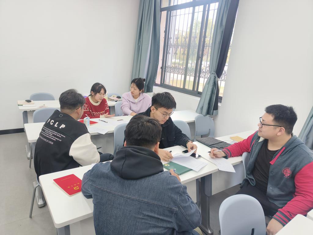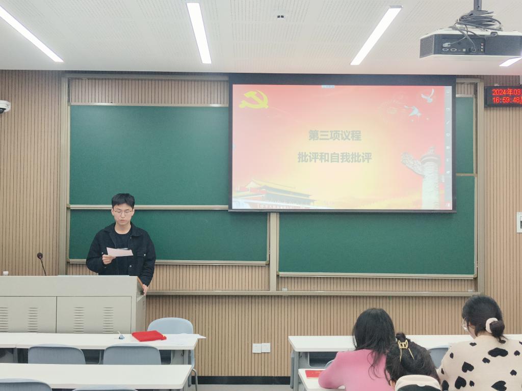 研究生第二党支部2023年度组织生活会暨民主评议党员大会在第一教学楼107室召开,党支部书记向慈主持会议,支部全体党员参会,研究生辅导员刘畅参会指导。
