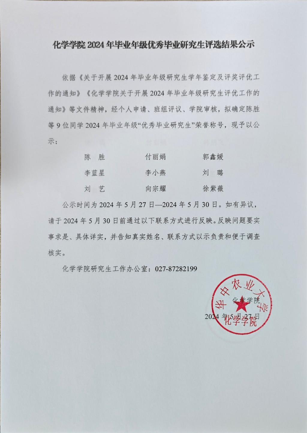 麻豆在线 2024年毕业年级优秀毕业研究生评选结果公示