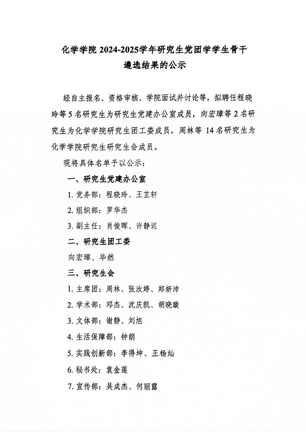 麻豆在线 2024-2025学年研究生党团学学生骨干遴选结果的公示