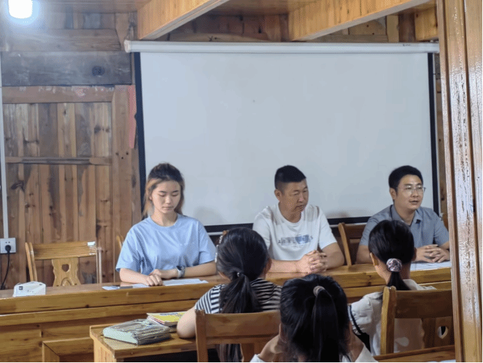 赴恩施咸丰县官坝村实践队在村委会开展了为期14天的爱心托管班活动。 在实践筹备前期,实践队与恩施州龙坪小学及当地村委建立稳定联系,通过前期调研,精准掌握了学校、学生、场地的基本情况。 7月11日,实践队成员满怀期待来到官坝村,与党支部书记、驻村工作队第一书记等,共同举行“阳光陪伴·缤纷一夏”暑期托管班开班仪式。