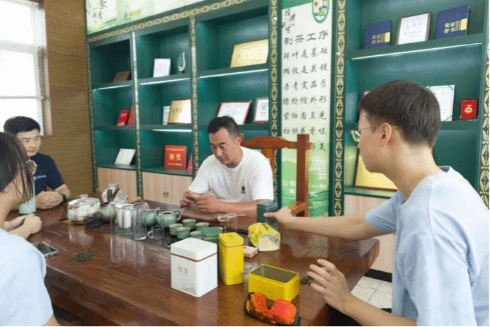 “化萃茶香,筑梦乡村”社会实践队赴河南省信阳市潢川县,以“专业赋能+实地调研+直播助农”实践模式深入探访信阳毛尖及特色农产品生产销售现状,依托学科优势开展产教融合实践,并投身助农直播带货,以实际行动助力乡村振兴。