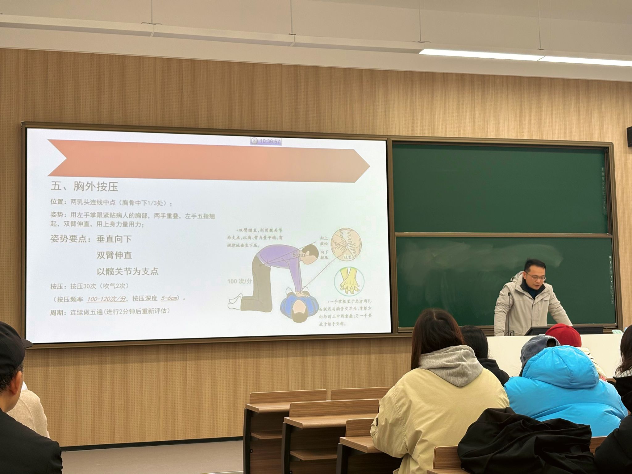 本次讲座紧扣校园生活健康需求,活动聚焦冬季呼吸道疾病防治、心肺复苏急救技能与大学生医保报销政策三大主题,通过知识讲解、现场演示与互动实操相结合的方式,提升师生健康意识与自救互救能力。