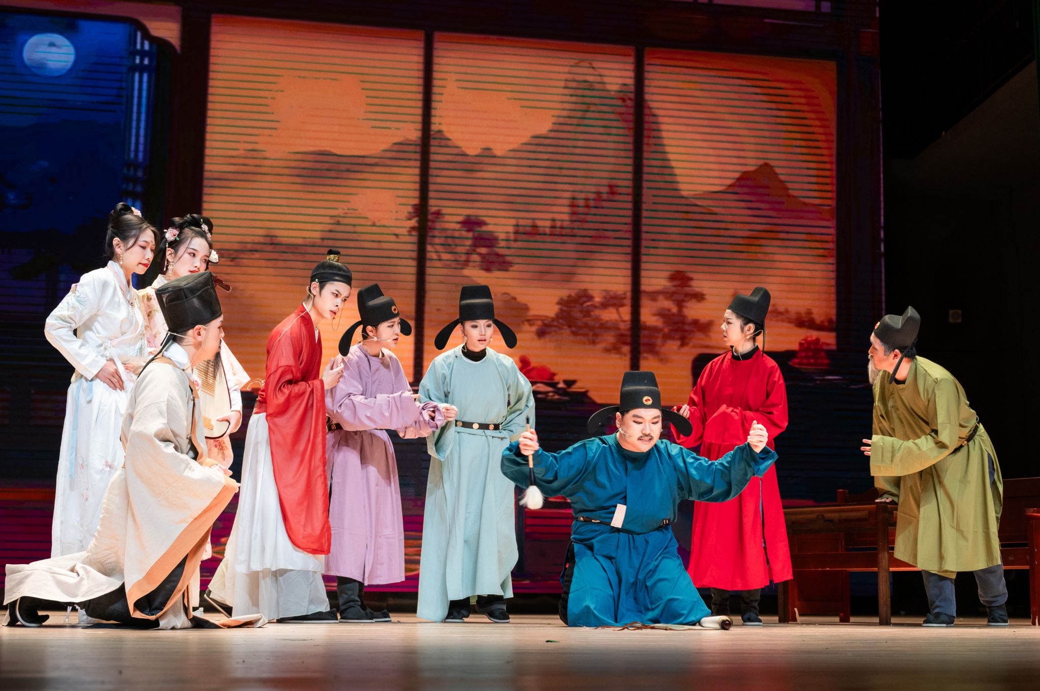 的《夜宴》情节在幽默对话、奢靡宴乐与紧张刺探间巧妙转换,将韩熙载身处乱世、忠奸难辨的复杂心境与政治智慧展现得淋漓尽致,一幅历史画卷在舞台上徐徐展开。