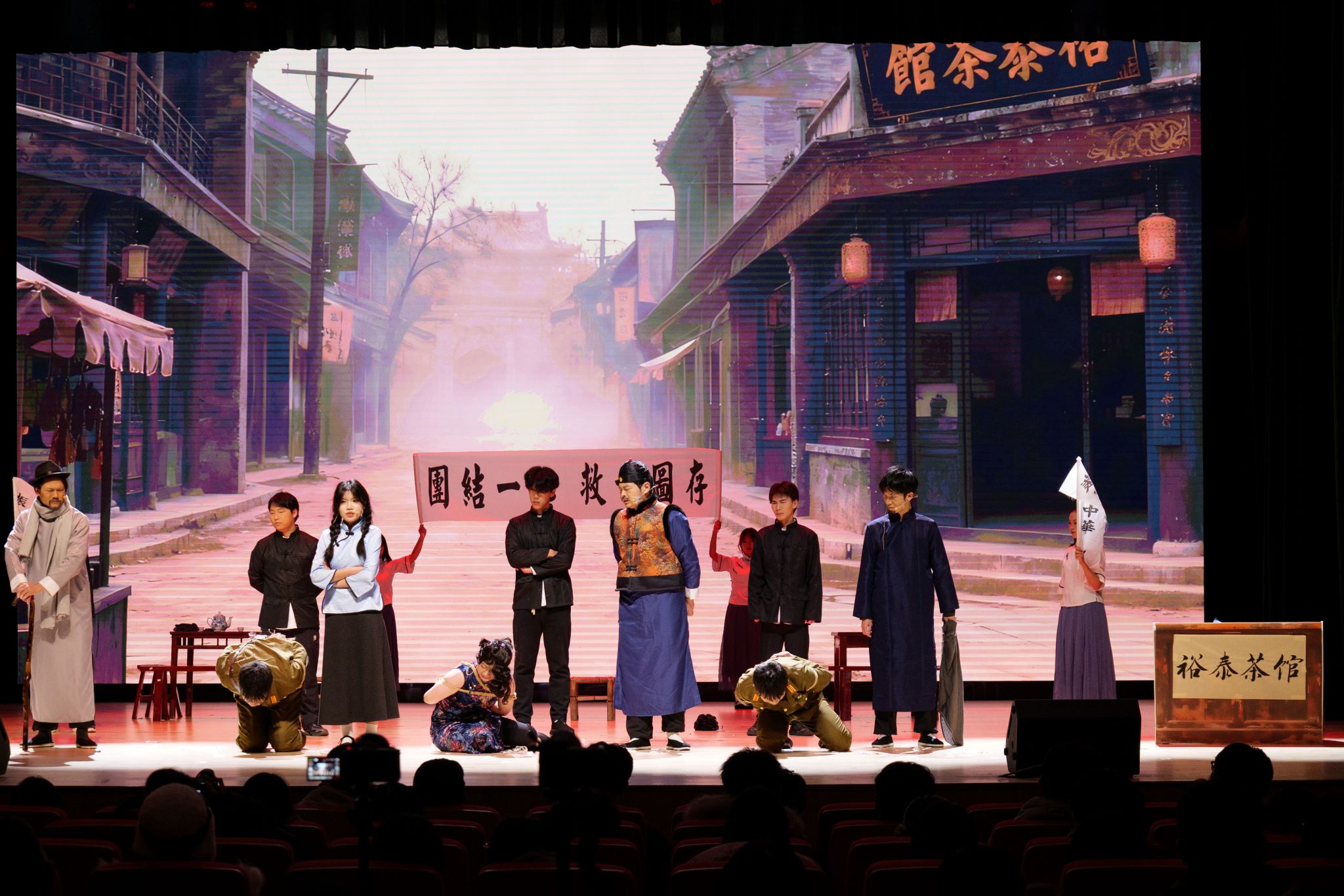 的《茶馆新编》望向抗战胜利后的动荡年代。掌柜王利发满怀希望重振祖业却面临重重阻碍,青年学生联合进步力量挺身而出,帮助茶馆渡过危机,新时代的抗争精神和新旧观念的碰撞发人深省。