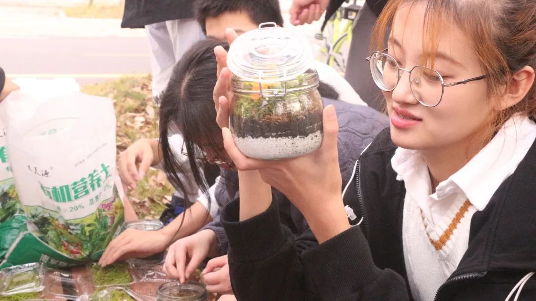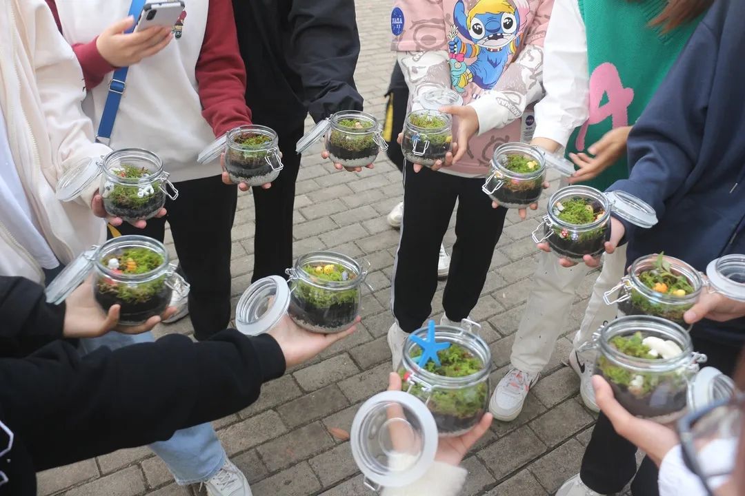 应化2201班田雨等同学举办的寻找发起人之“指尖森林,掌上世界”的生态瓶创作活动在狮子山广场如期举行。同学们相聚在树下,在指尖之间创造森林,在手掌之中创造世界,一同感受小小世界的魅力。