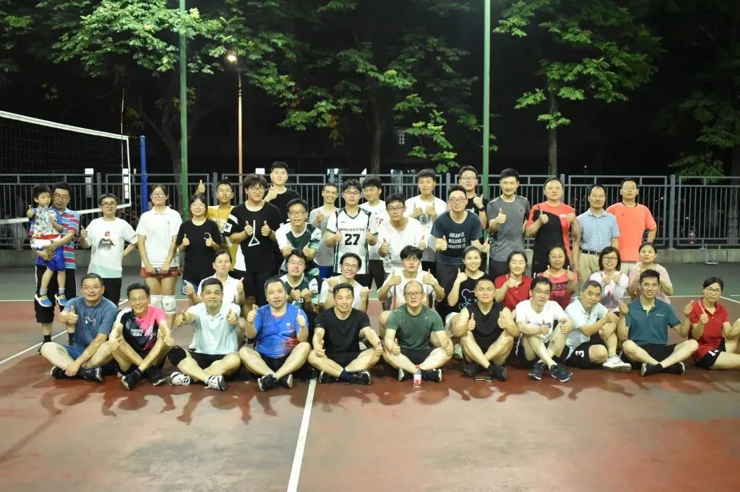 18级毕业生与老师们共同来到排球场,一场“师生融乐”排球赛正式拉开帷幕。本次排球赛按照老师和同学们的自由组队分为物理组、无机分析组、行政组、有机及物化组、数学组和学生组6个组,每组内都有师生相互搭档。