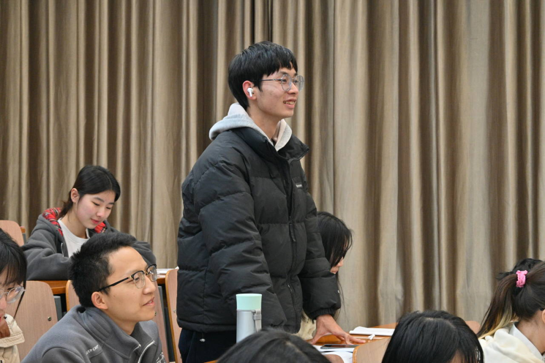 对于已经度过一个学期的大一学生,程思源老师提出了两个问题:一是“初入大学你的感受是什么?”二是“你的大学不想留下怎样的遗憾?”而同学们的答案也各有不同,梁城宇同学认为上了大学之后更自在了,生活更加地丰富多彩,田雨同学表示在大学四年不想一无所获,留下遗憾。针对同学们的回答,程思源老师进行了三个方面的讲解。
