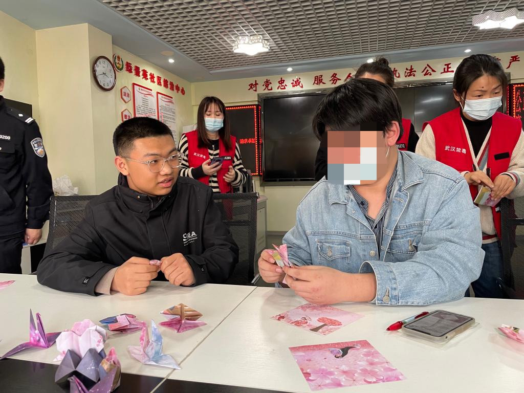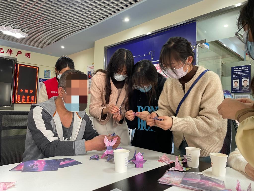 为帮助戒毒学员更好地融入社区,丰富戒毒学员生活,提升学员与毒魔作斗争的信心,“e路阳光”志愿们同禁毒民警、社工一起组织了团体心理辅导活动,通过与戒毒学员一起做游戏、一起做手工艺品、一起互动交流等,帮助他们正确认识自我,营造良好的人际关系,坚定戒治信念。在活动现场,戒毒学员与志愿者们一起折起了代表着希望与梦想的千纸鹤,学员们在上面写上了自己对于未来的美好愿景,而志愿者写上了自己的成长规划和对学员的祝福,不一会儿,桌子上就摆满了好多各式各样的千纸鹤,学员与志愿者们在温馨的氛围下互赠祝福。