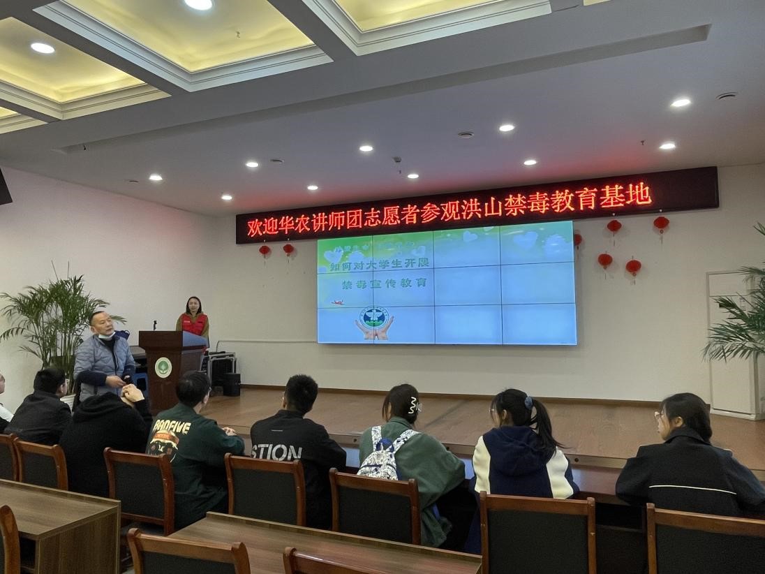 “e路阳光”志愿服务队在指导老师程思源的带领下赴洪山区禁毒工作基地,开展“青春禁毒行”志愿服务活动,志愿者们跟随禁毒民警、社工学习禁毒知识,为成立大学生禁毒宣讲团打好理论基础,搭好实践平台。