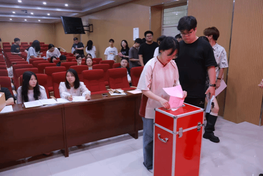会议最后,研究生辅导员马明钰对当选代表表示祝贺,并提出三点期望:一是强化责任担当,发挥桥梁纽带作用;二是聚焦学术创新,引领学风建设;三是凝聚青年力量,服务同学成长成才。会议在嘹亮的校歌声中圆满落幕。