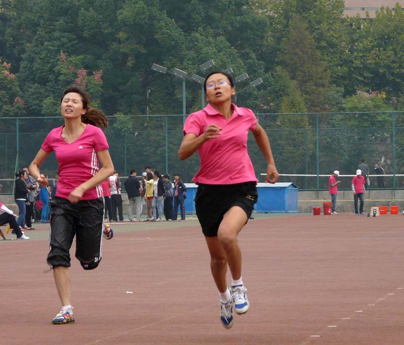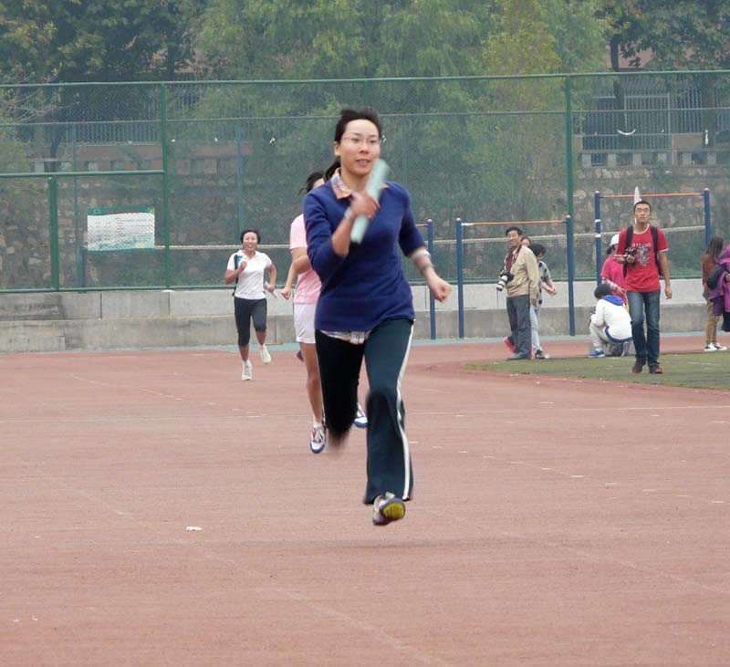 教工女子4×100冠军,最后一棒,别丽华冲刺