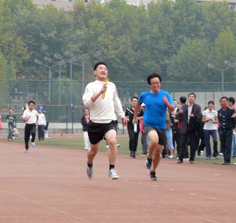 教工男子4×100小组第一,最后一棒,丁鹿伟冲刺