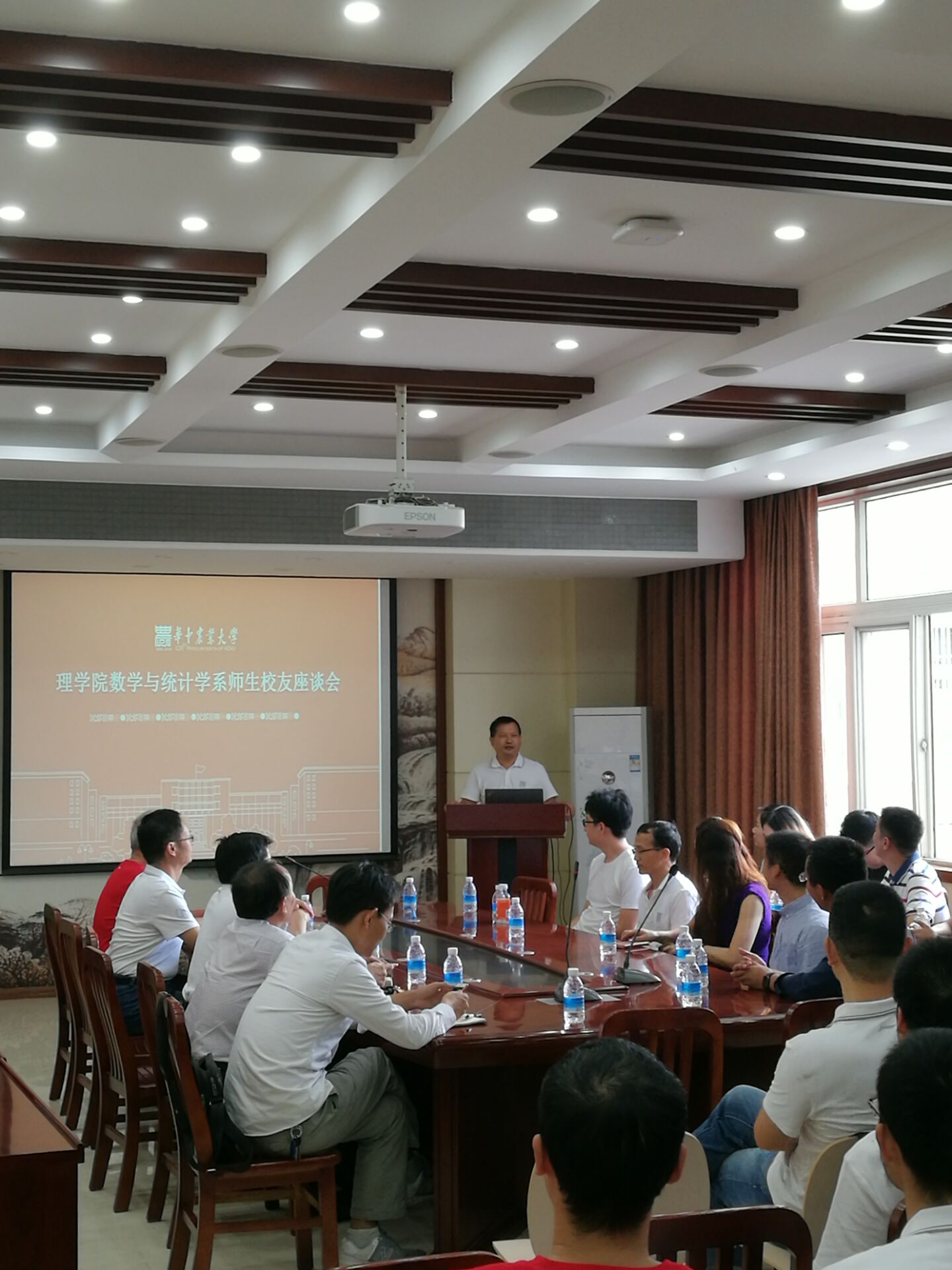 接下来石峰邀请校友们与老师互认,浓浓师生情,满满都是爱。各位校友随后依次做自我介绍,简单阐述了自己的现状以及离开华农后的种种经历。有一位2006级从事管理工作的校友提出,自己所做的工作虽然看似与本专业无关,但在实际工作中,本科期间学习的数据处理知识大有用处。还有一位正就读于武汉大学的校友强调了本科学好专业课的重要性,勉励在座的新生不畏艰难,刻苦学习。现任小米科技信息部武汉研发中心负责人的杨轲校友告诫在校生,如果有明确的目标就要认真努力,如果没有,即便是迷茫的时候也不要停下来。对于“如何发挥本专业优势,‘避开劣势’”的问题,一位校友答道,首先要明确自己的方向,如果确定做研发,要及时补充代码训练,但本专业的优势在于数学是基础学科,数学与统计学系的学生有一定的逻辑思考能力以及较为扎实的数学功底,这些也是以后就业的基础。