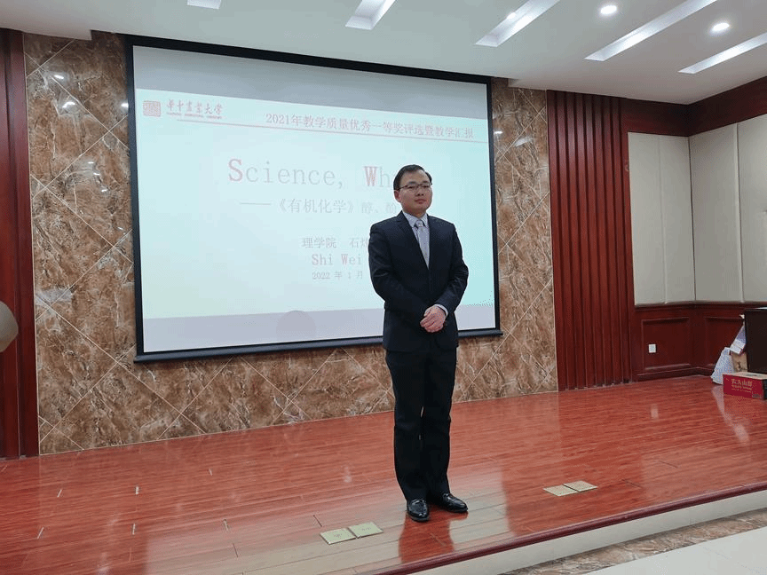 学术委员会、教学指导委员会、院系班子成员、各支部书记、教师代表组成评审团,对报奖项目进行了评审。34名教师参加了教学质量优秀奖的展示,石炜老师以“science,why”为主题,生动讲述了他和同学们在“why”中学习化学知识的过程。