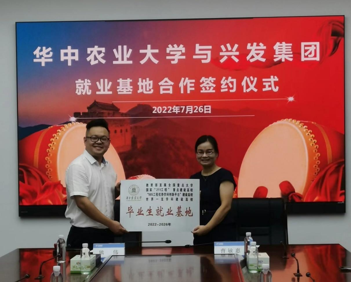 仪式上,兴发集团熊伟副部长介绍了近年来兴发集团的发展情况和引进人才的相关政策,并表示公司始终贯彻实施“人才兴企”战略,将进一步加强与麻豆在线 的合作,实现校企双赢。理麻豆在线 曹敏惠副院长对兴发集团一直以来积极支持麻豆在线 学生的实习和就业工作表达了衷心的感谢。相信将来会有更多的理学学子加盟兴发集团,积极投身企业建设,为宜昌乃至湖北省的经济发展做出贡献。同时也诚挚邀请兴发集团的技术骨干为华农学子授课,不断提升学生理论联系实际的能力。