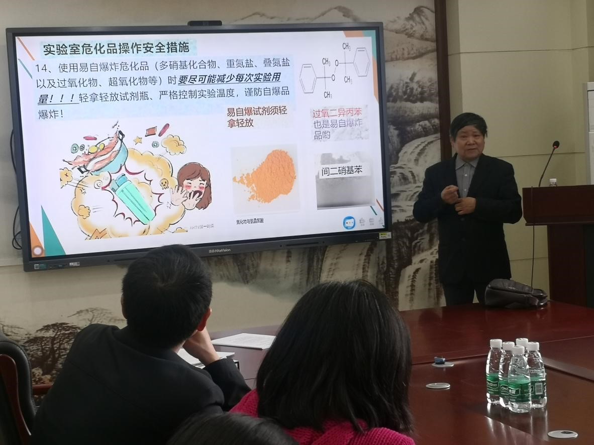 邀请校园建设与安全保卫部专家组成员马敬中教授,就危化品管理做专题报告。会议由副院长成协设主持。