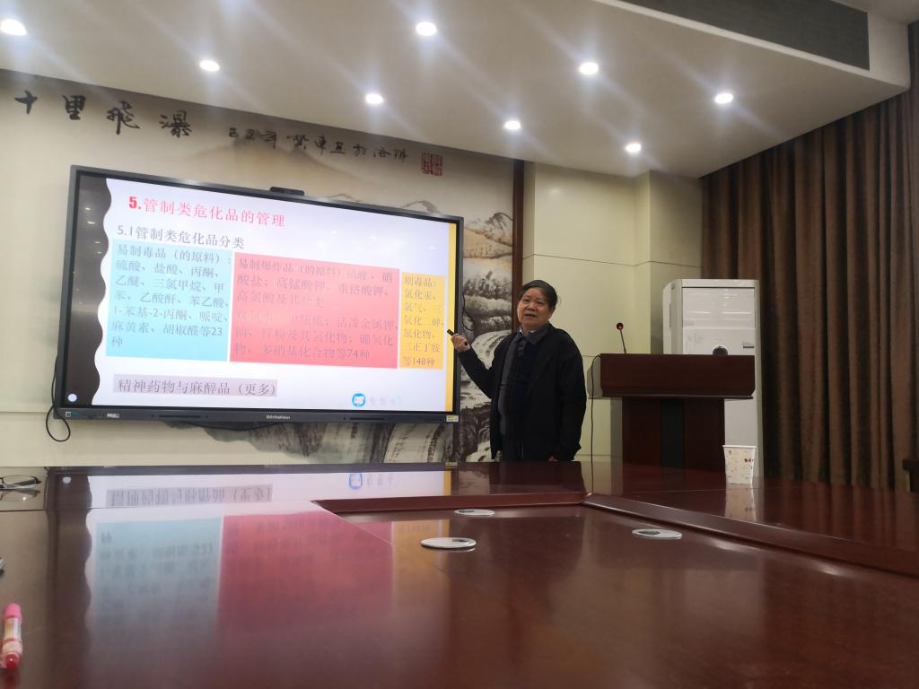 “不只是有毒物质才叫危化品,也不只是管制化学物质才叫危化品!”马敬中向大家仔细介绍危险化学品的概念和种类,并表示涉危化品工作人员首先需弄清楚管制危化品种类。