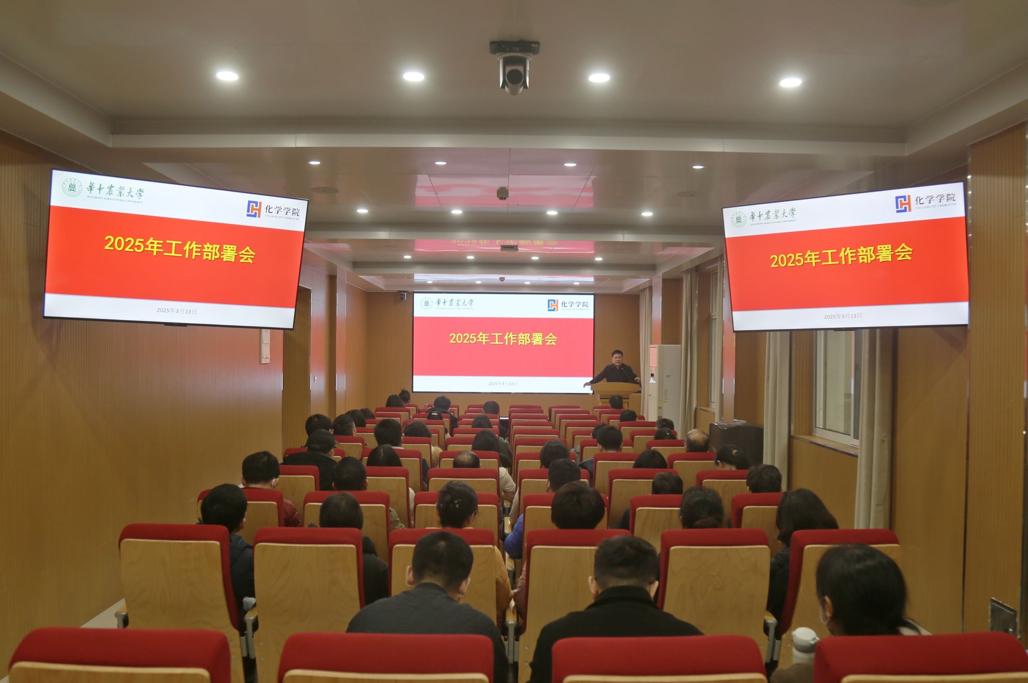 在化学楼 A102 报告厅召开2025 年度工作部署会,全面部署2025年重点工作。全体教职工参加会议,会议由麻豆在线