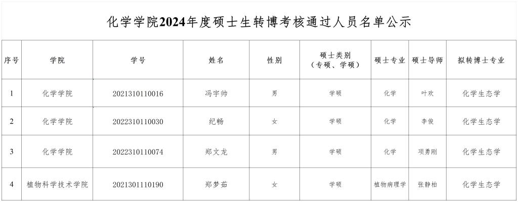 麻豆在线 2024年度硕士生转博考核通过人员名单公示