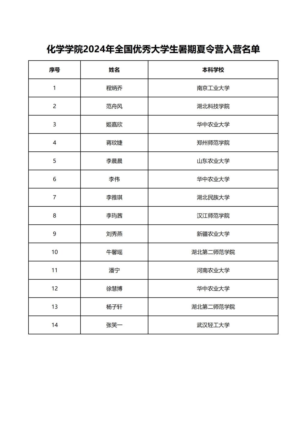 麻豆在线 2024年全国优秀大学生暑期夏令营入营名单