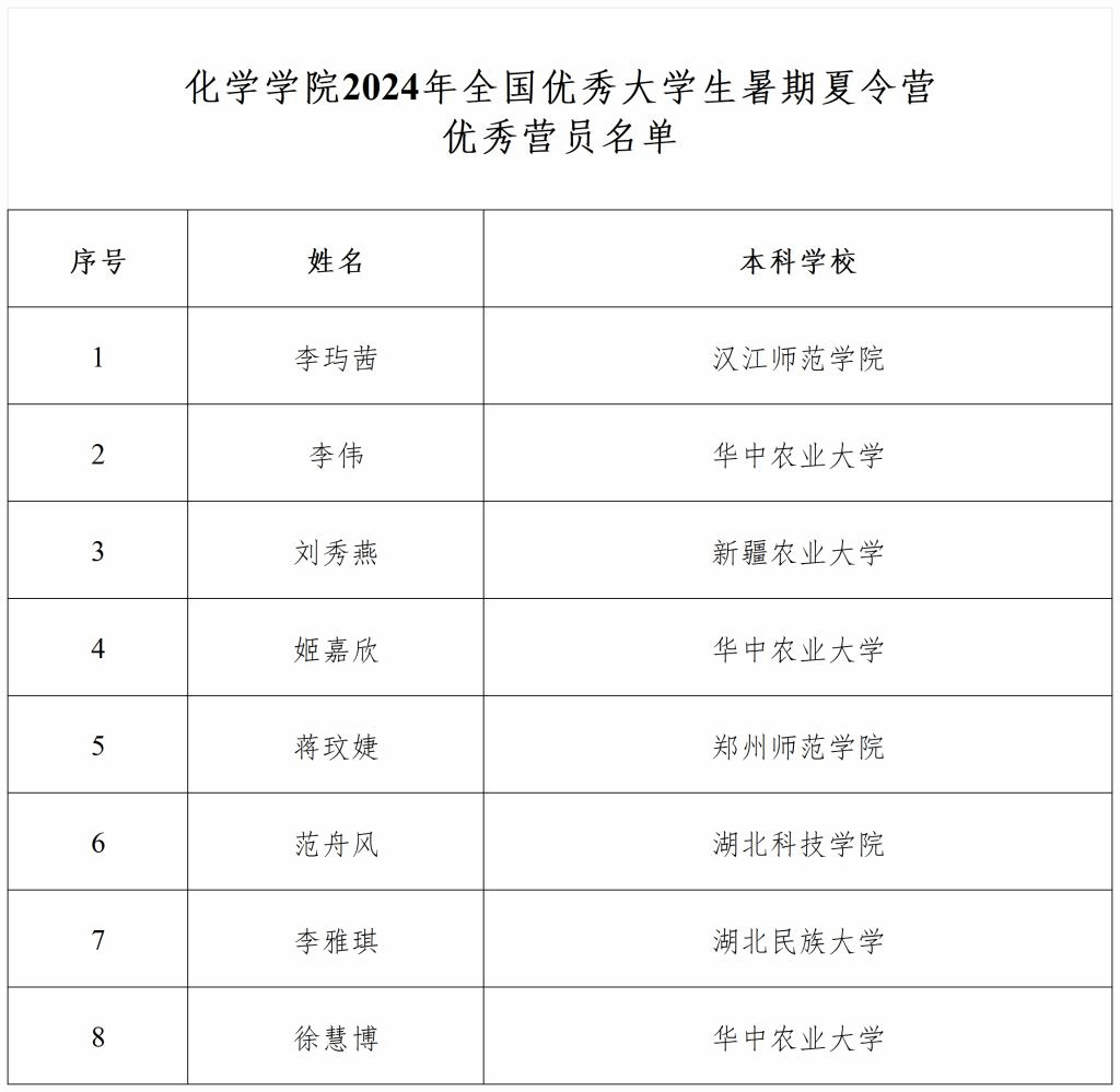 麻豆在线 2024年全国优秀大学生暑期夏令营优秀营员名单