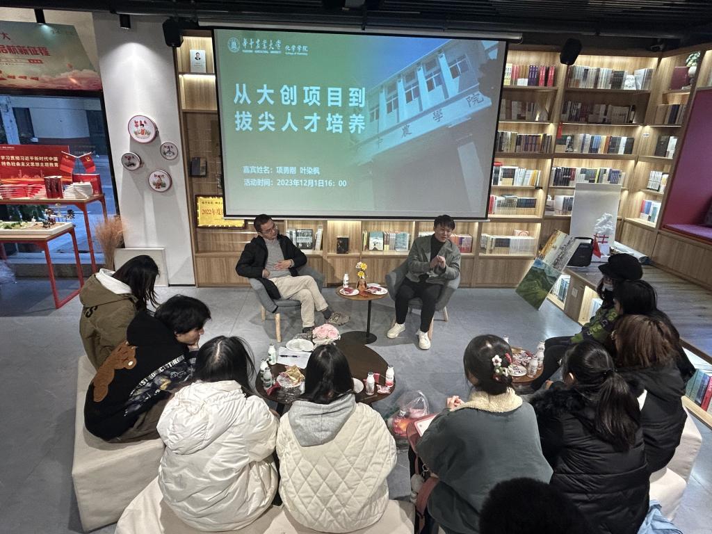 邀请项勇刚和叶染枫两位老师,在倍阅书店与同学们进行了一场主题为“从大创项目到拔尖创新人才培养”的分享交流会。此次活动旨在提高大学生的创新创业意识,培养其独立思考、善于质疑、勇于创新的探索精神,推动大学生创新创业能力的提升,为适应创新型国家建设培养高水平创新创业人才。